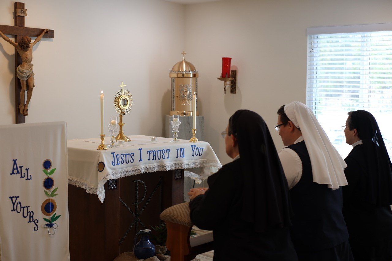 By the grace of God and the generous hearts of our donors, we were able to finally move into our newest SJS home, Blessed Sacrament Convent in Bonita, CA. Fr. Ben Davison has generously donated many of the necessary things to have a fully functional chapel in our convent. The Sisters now have the Blessed Sacrament present in their home for adoration.